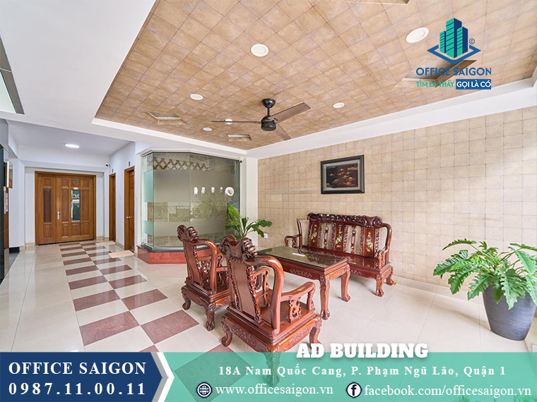 Office for lease in Pham Ngu Lao Ward, District 1 – AD Building features a well-structured design with modern and luxurious amenities. It is constructed to meet professional office leasing standards, fully equipped with modern facilities, security, and professional services. The building also follows feng shui principles suitable for all companies renting space here. Upon entering the building, tenants will experience the elegance and convenience that AD Building brings to your business and office.