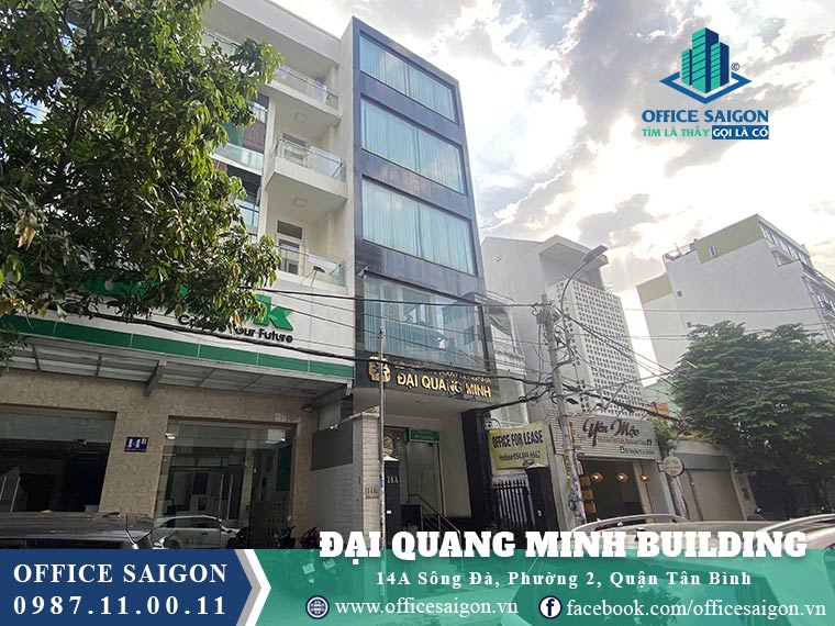 Dai Quang Minh Building, located at 14A Song Da Street, Tan Binh District, offers affordable office spaces near Truong Son Street and Tan Son Nhat Airport; with rental prices from $10/m²/month, it is ideal for directors, employees, secretaries, and HR professionals seeking a convenient and professional workspace.