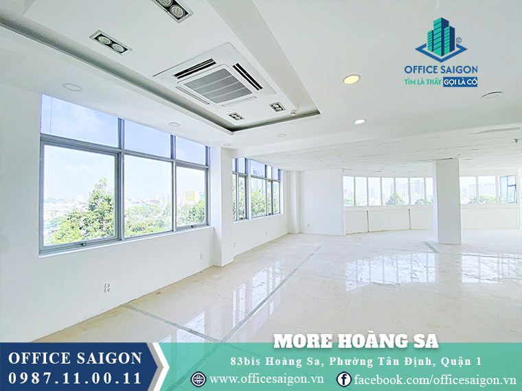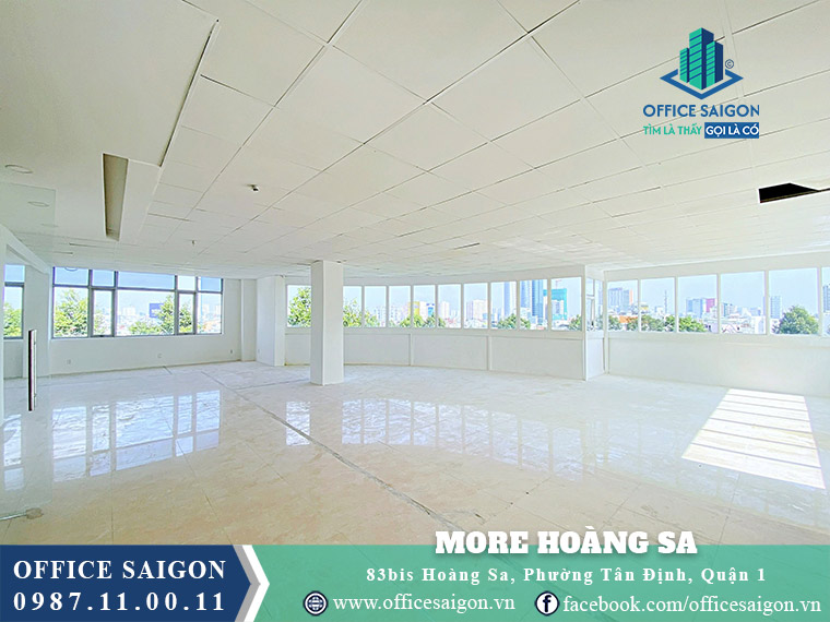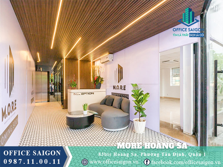 Do Dau Hoang Sa Office Building, now is M.O.R.E Hoang Sa, located at 83B Hoang Sa, Da Kao Ward, District 1, its location is on one of the busiest and most beautiful streets in District 1, surrounded by numerous amenities, with its frontage facing a park and a refreshing riverside. Therefore, this professional office building becomes an ideal location for businesses seeking an office with good feng shui, modern facilities, and a cost-effective budget.