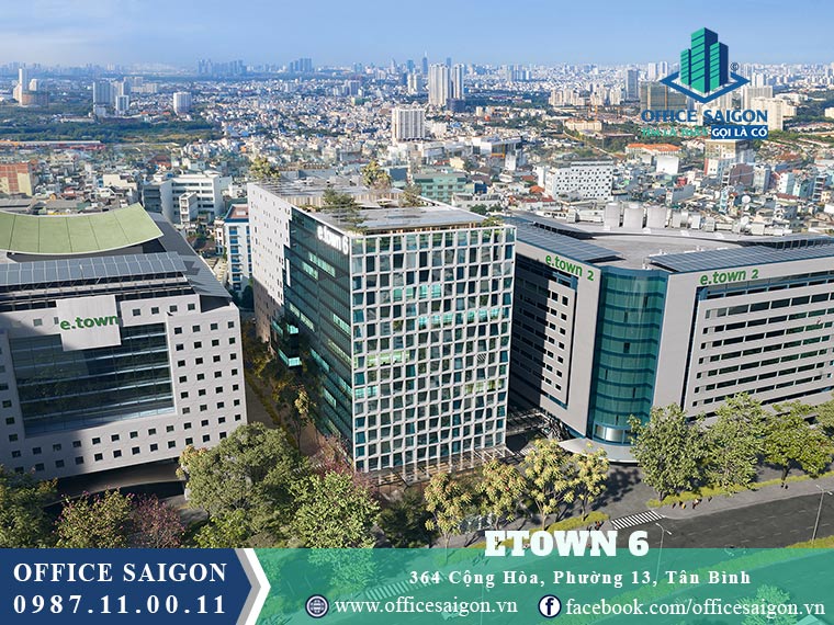 Etown 6, 364 Cong Hoa Street, Tan Binh District, features flexible offices from $25/m². With quick access to the airport and District 1, the building suits secretaries, employees, and growing businesses that value sustainability, convenience, and high-end facilities.