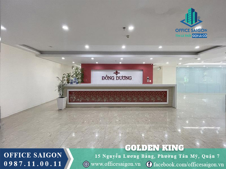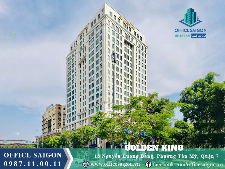 Golden King at 15 Nguyen Luong Bang, District 7, benefits from its location on a major boulevard in Phu My Hung, close to SECC and Crescent Mall; with rents from $18/m², it provides an ideal office environment for managers, secretaries, and corporate teams valuing prestige and efficiency.