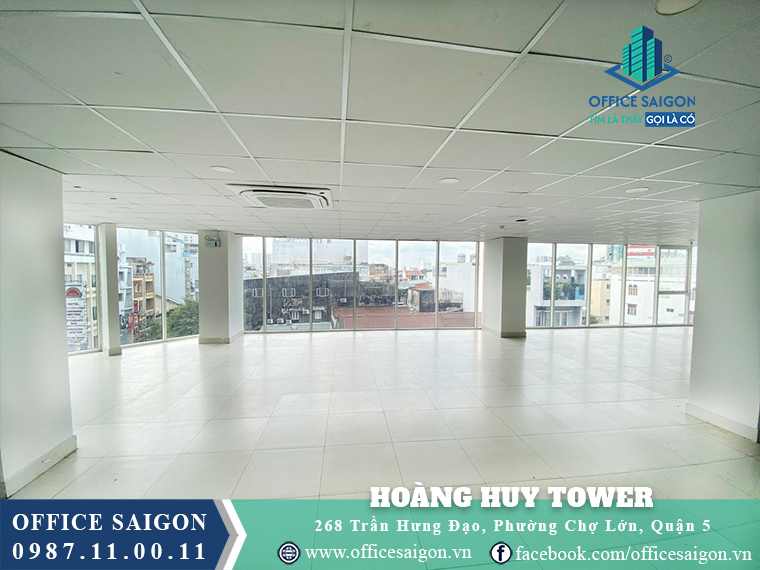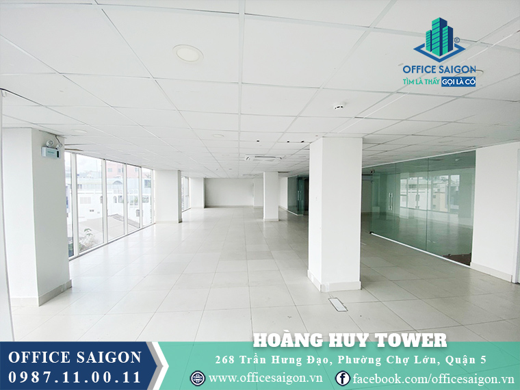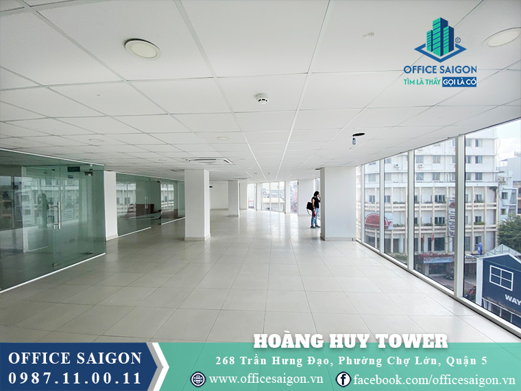 Hoang Huy Tower is a modern commercial building located at 268 Tran Hung Dao Street, Ward 11, District 5, Ho Chi Minh City. With its prominent position on a major arterial road, the building offers exceptional access to central business districts, making it a strategic location for companies seeking a professional and efficient office for rent in district 5. The area is known for its vibrant commercial activity, with convenient access to financial institutions, administrative centers, restaurants, and service providers—perfect for both startups and established businesses looking for a central base of operations.