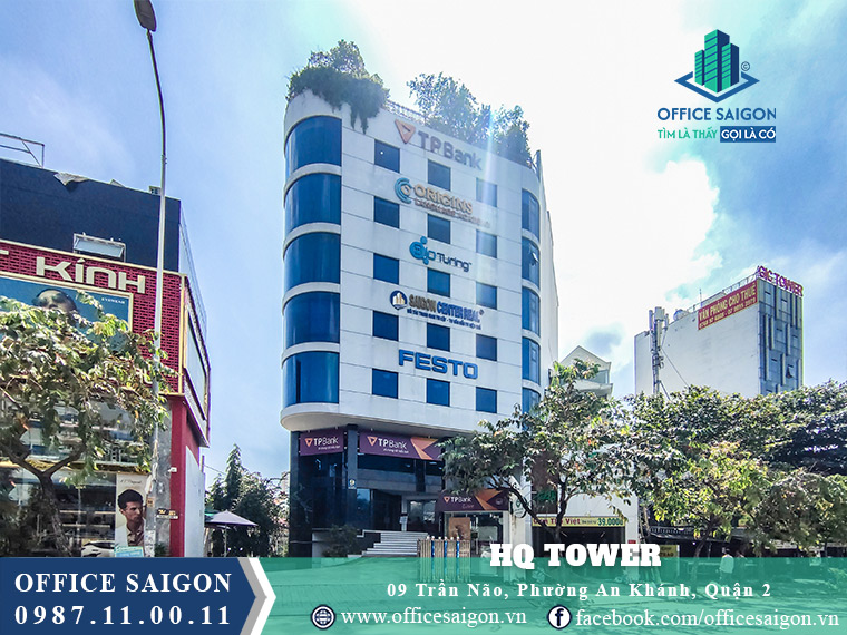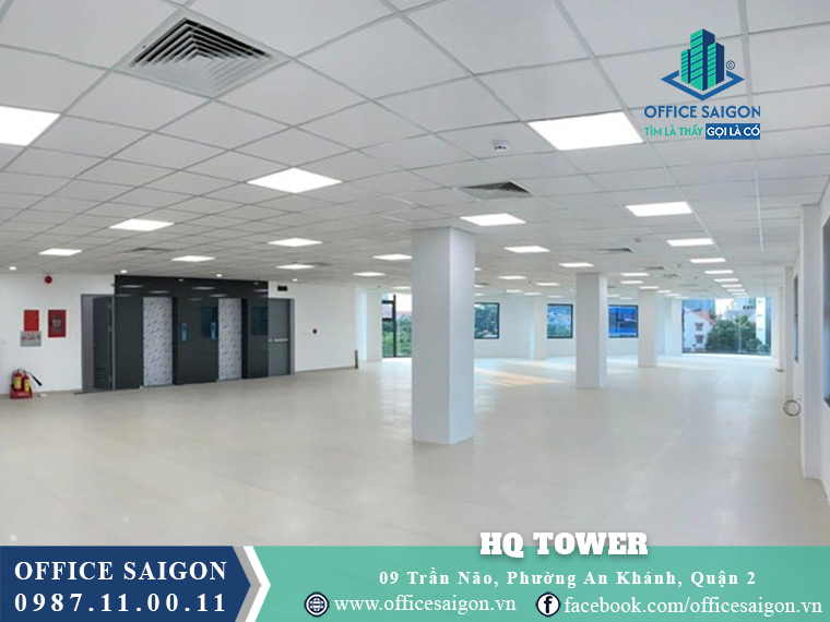 HQ Tower is located at Tran Nao Street, An Khanh Ward, Thu Duc City (formerly District 2), Ho Chi Minh City, offering easy access to major areas like Binh Thanh, District 9, and Thu Duc via arterial routes; with rental prices ranging from $17 to $20/m²/month, HQ Tower provides modern, flexible office spaces across 5 floors and 2 basements, making it ideal for small to medium-sized enterprises seeking a professional, well-connected, and cost-effective workspace.
