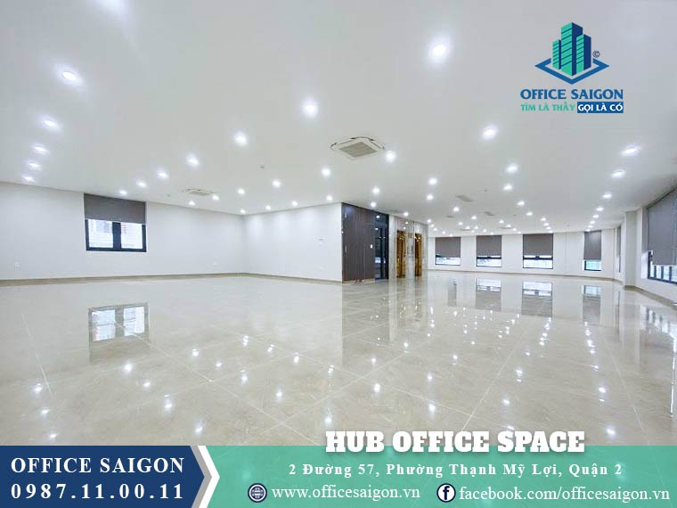 HUB Office Space Building, located at No. 02 Street 57, Thanh My Loi Ward, District 2, Ho Chi Minh City, sits in a vibrant developing area near major arterial roads connecting to central districts and urban zones; offering office space from 150m² to 340m² at competitive rental rates, it is ideal for SMEs seeking a fully equipped, professional, and efficient working environment.