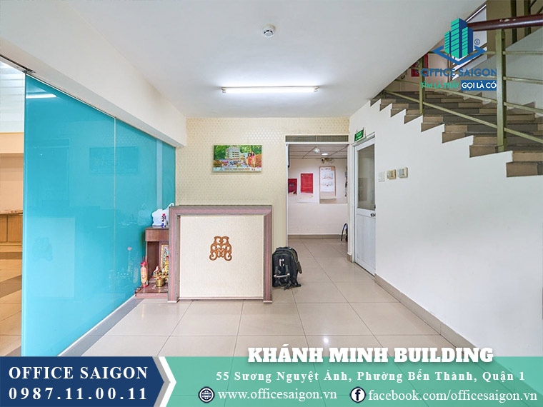 Khanh Minh Building is located at No. 55 Suong Nguyet Anh Street, Ben Thanh Ward, District 1, near major and important roads in District 1 such as Cach Mang Thang Tam, Nguyen Thi Minh Khai, and Ton That Tung. Positioned in a bustling residential and commercial area, it is surrounded by shopping centers, office towers, and offers convenient traffic connections to Districts 3, 4, 5, and neighboring districts. With such a strategic location, the building is also close to administrative offices, banks, shopping malls, office buildings for lease in District 1, restaurants, hotels, and major domestic and international companies.