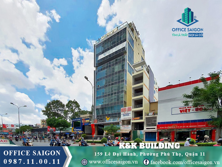K&K Building at 159 Le Dai Hanh, District 11 provides well-equipped office for lease from $12/m²/month in a highly accessible location near Ba Thang Hai Street, ideal for secretaries, employees, and management looking for a professional working environment with great connectivity and full amenities.