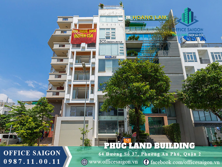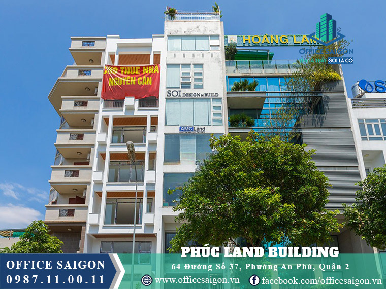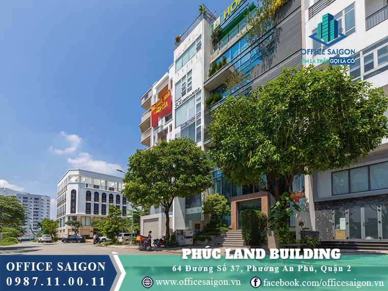 Phuc Land Building is located at 64 Street 37, An Phu Ward, District 2, Thu Duc City, in a prime residential area with excellent connectivity to downtown Ho Chi Minh City and nearby districts; offering office spaces from 8–14 USD/m²/month, it is ideal for SMEs seeking a professional, comfortable, and cost-effective working environment.