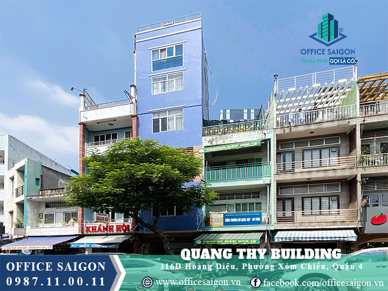 Quang Thy Building is a modern and cost-effective office for rent in district 4, located at 116D Hoang Dieu Street, Ward 12, District 4, Ho Chi Minh City. The building offers an ideal working environment for small and medium-sized businesses thanks to its strategic location, professional services, and competitive rental rates. Situated on Hoang Dieu Street—a major route that connects District 4 to District 1 and District 7—Quang Thy Building benefits from excellent transportation access, reducing commute time and improving connectivity for both clients and employees.