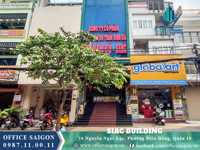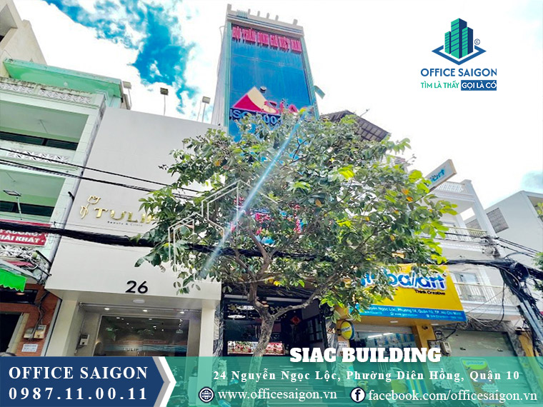 SIAC Building, located at 24 Nguyễn Ngọc Lộc Street, District 10, offers office rentals from $9–11/m²/month; just 50 meters from 3/2 Street, this central location provides quick access to Districts 1, 3, and 5, making it ideal for directors, HR teams, and office staff seeking a cost-effective workspace.