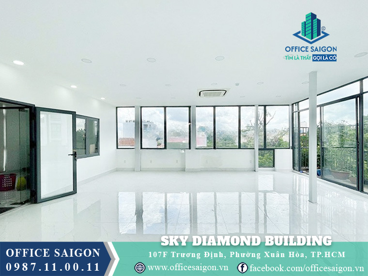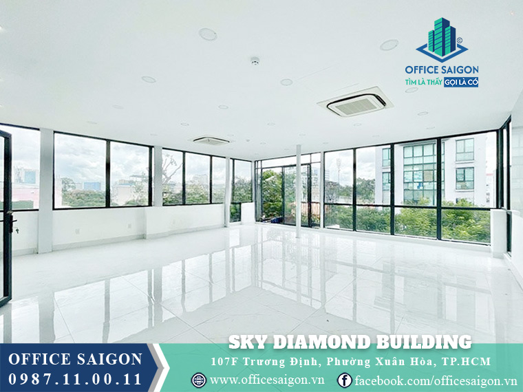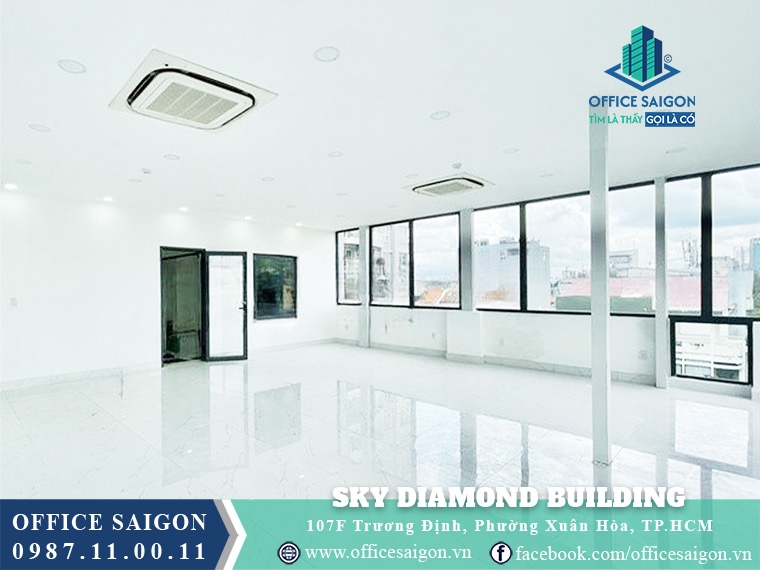 Sky Diamond Building is located at 107F Truong Dinh Street, Vo Thi Sau Ward, District 3, right in Ho Chi Minh City’s central economic zone with convenient access to key routes; offering rental prices from just $16/m²/month and flexible office spaces, it is an ideal choice for small to medium-sized businesses, directors, employees, and HR professionals seeking a professional workspace.