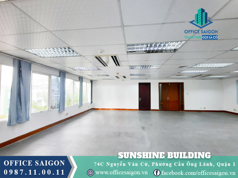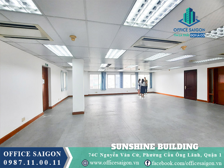 Sunshine Building, located at 74C Nguyen Van Cu Street, Cau Ong Lanh Ward, HCMC, stands out on this major route thanks to its modern design and the use of environmentally friendly materials, providing office spaces filled with natural light. With a standard and contemporary structure, Sunshine Building offers a variety of office leasing options in District 1, making it an ideal choice for small and medium-sized businesses and promising to satisfy tenants with its thoughtful features.