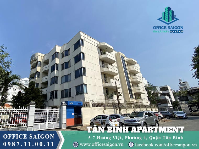 Tân Bình Apartment tọa lạc tại vị trí chiến lược tại 5-7 Hoàng Việt, phường 4, quận Tân Bình, là một tòa nhà văn phòng hiện đại và tiện nghi, phù hợp cho các doanh nghiệp muốn thuê văn phòng tại Tân Bình Apartment.