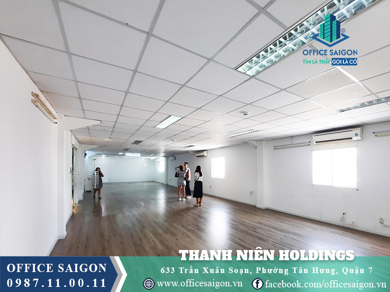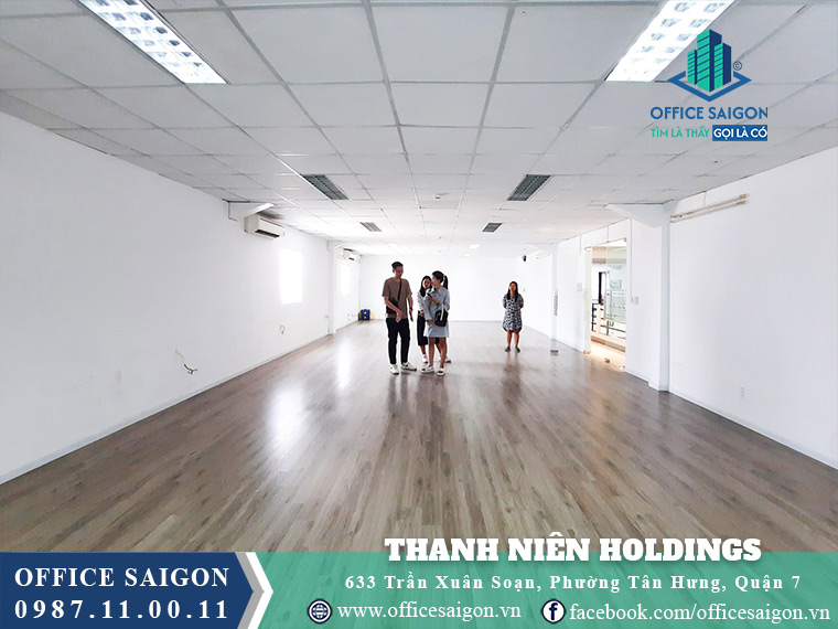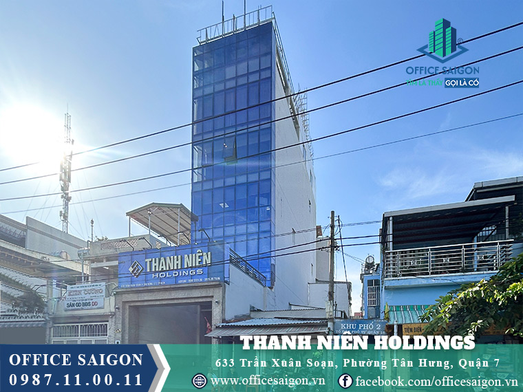 Thanh Niên Holdings at 633 Tran Xuan Soan, District 7, lies near SECC and Crescent Mall; with rents from $10/m²/month, the building suits secretaries, office staff, and managers needing flexible layouts, modern amenities, and convenient access to central business routes.