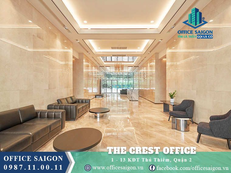 The Crest Office Building, located at Lot 1.13, Thu Thiem Urban Area, Thu Thiem Ward, District 2, HCMC, offers Grade A office spaces with modern design and prime connectivity to District 1 and surrounding areas; with rental prices from $33/m²/month, it is ideal for businesses seeking prestige, convenience, and operational efficiency.