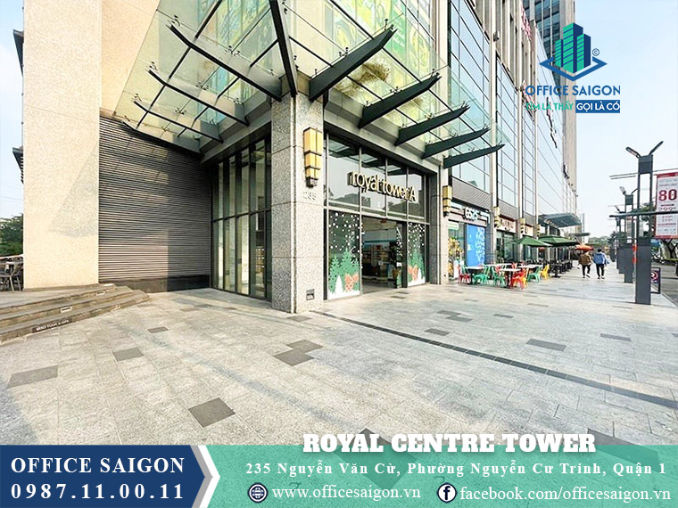 Royal Centre Tower is located at 235 Nguyen Van Cu, Nguyen Cu Trinh Ward, District 1. It is a complex that includes a shopping center, office spaces for lease, and luxury apartments.