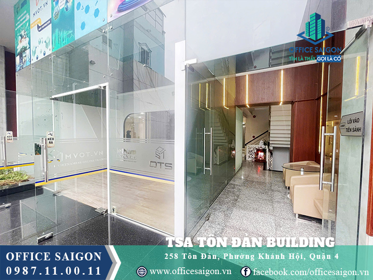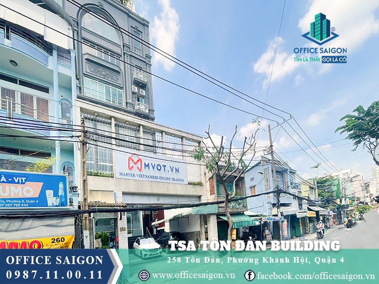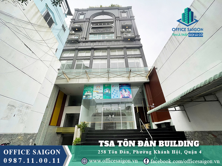 TSA Ton Dan Building located at 258 Ton Dan Street, District 4, Ho Chi Minh City, enjoys a prime position near Ben Van Don and Khanh Hoi Street, offering fast access to District 1; office for lease with rental prices from $12/m²/month, TSA Ton Dan Building is ideal for directors, HR teams, secretaries, and office professionals seeking a convenient, cost-effective, and professional workspace.