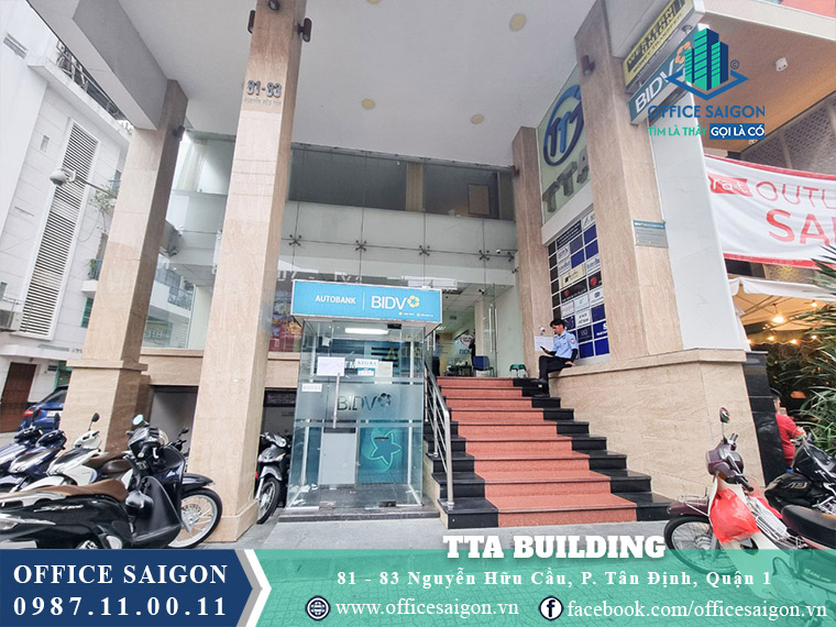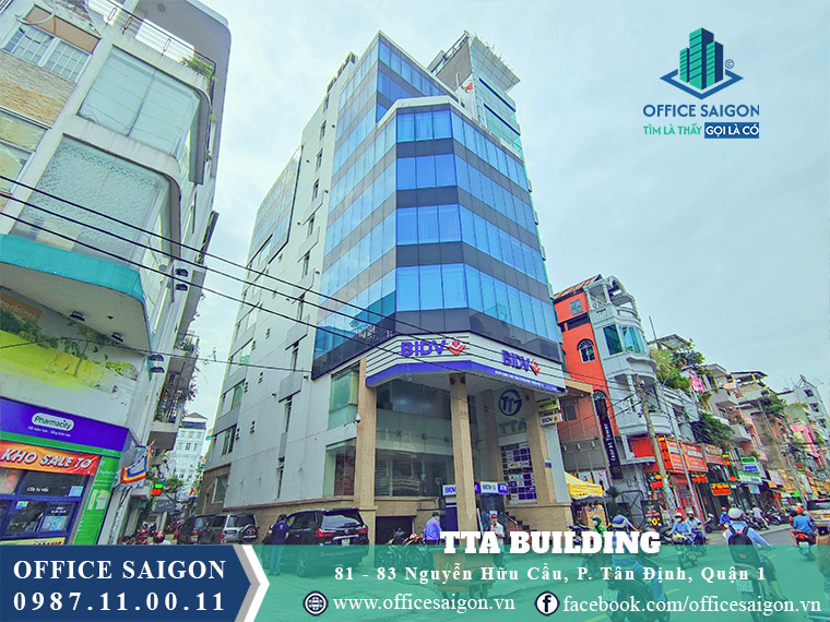 TTA Building is located at 81 - 83 Nguyen Huu Cau Street, Tan Dinh Ward, District 1, near major roads such as Hai Ba Trung, Tran Quang Khai, and Vo Thi Sau. It is situated in a bustling residential area, close to shopping centers, offering convenient access to Binh Thanh District, District 3, Phu Nhuan District, and other neighboring areas. Thanks to its prime location, the building is also near government offices, banks, commercial centers, premium office buildings in the city center, restaurants, hotels, and both local and international companies.