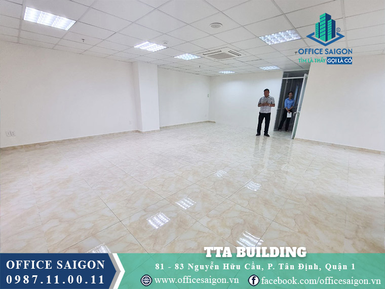 TTA Building is located at 81 - 83 Nguyen Huu Cau Street, Tan Dinh Ward, District 1; right in a bustling residential area surrounded by shopping centers, parks, schools, restaurants, and other office buildings for lease in District 1. Setting up an office here allows businesses to conveniently travel to District 3, Phu Nhuan District, and Binh Thanh District. The building features a standard high-quality structure with a usable floor area reaching thousands of square meters, promising optimal leasing options for businesses.