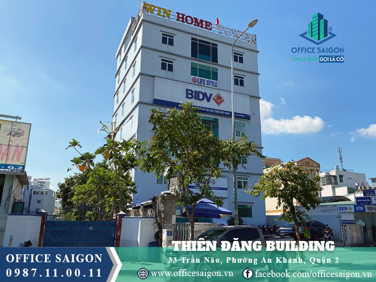 Win Home 33 Trần Não tọa lạc tại 33 Trần Não, Phường Bình An, Quận 2, sở hữu vị trí đắc địa trên tuyến đường giao thông huyết mạch kết nối khu vực Thủ Thiêm và trung tâm TP. Hồ Chí Minh; với giá thuê hợp lý từ 13-14 USD/m²/tháng, tòa nhà hạng C này cung cấp không gian làm việc hiện đại, diện tích linh hoạt từ 50 m², đáp ứng nhu cầu của doanh nghiệp vừa và nhỏ, kèm theo các tiện ích như thang máy, bãi đỗ xe rộng rãi và an ninh 24/7.