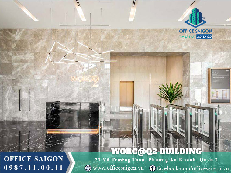 Worc@Q2 Building, located at 21 Vo Truong Toan Street, Thao Dien Ward, District 2, Ho Chi Minh City, offers modern office space in a prime area known for its concentration of commercial buildings and business conveniences; with competitive rental prices from $28/m²/month, Worc@Q2 Building is ideal for small to large enterprises seeking a professional, well-connected working environment.